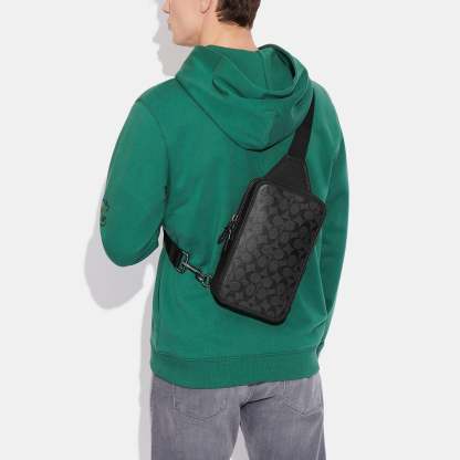 Signature coated canvas and refined pebble leather Inside zip and multifunction pockets Zip closure fabric lining Adjustable shoulder strap for crossbody wear (clip left or right) 6 1/4 (L) x 10 1/2 (H) x 2 1/4 (W) Style No. C9867 | Outlet Sullivan Pack In Signature Canvas - Grey