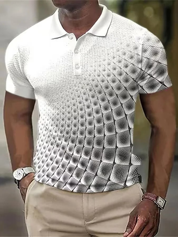 Printed Lapel Short Sleeved Polo Top